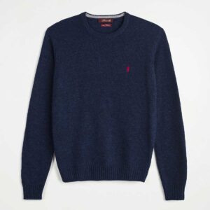 95,20€Maglia girocollo 100% lana merino, finezza 12, colore blu. Comfort, eleganza e qualità per ogni occasione.