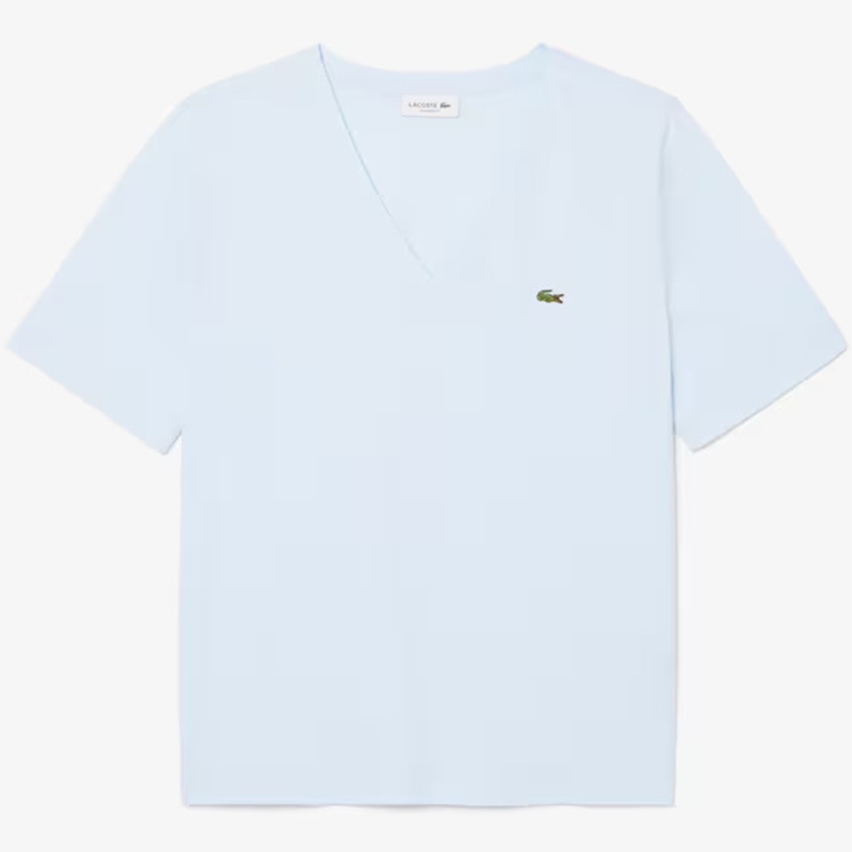 T-shirt donna Lacoste scollo a V blu relaxed fit in morbido cotone