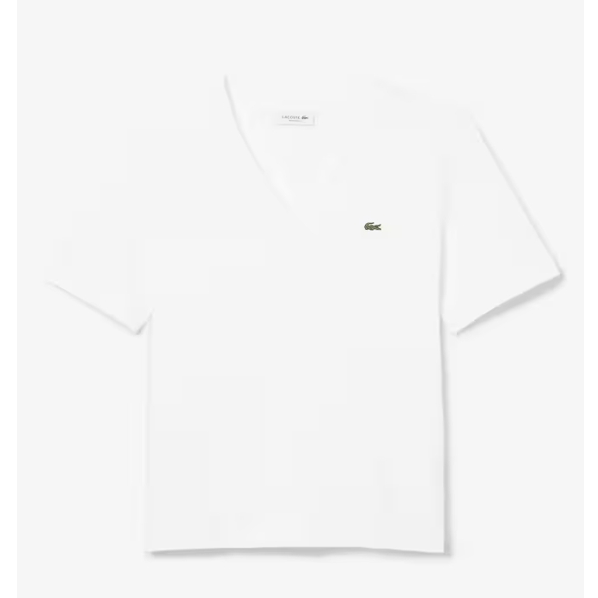 T-shirt bianca con scollo a V in cotone relaxed fit Lacoste Donna