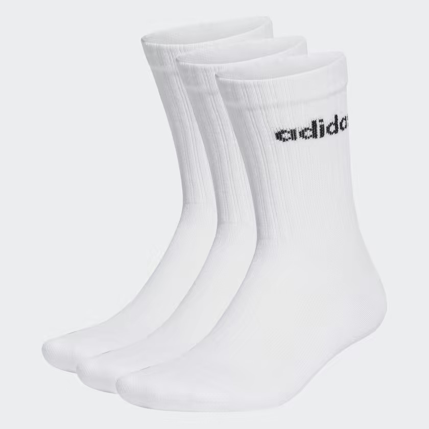 15,30€Calze Adidas Linear Cushioned (3 paia), art. HT3455. Lunghezza al polpaccio, ammortizzazione su punta e tallone, in misto cotone e materiali riciclati.
