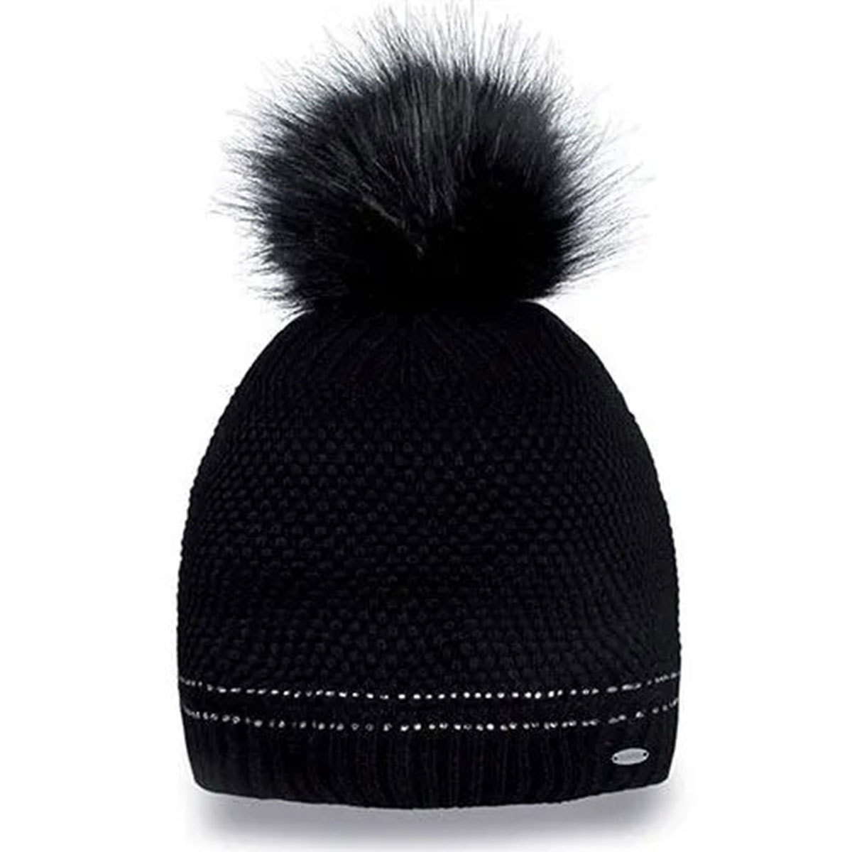 Berretto Brugi Donna con Strass e Pompon in Pelliccia Ecologica Nero